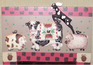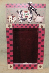 you look at it! Wooden frame border surrounds the 6x10 mirror. Handpainted country check border with a menagerie of critters at